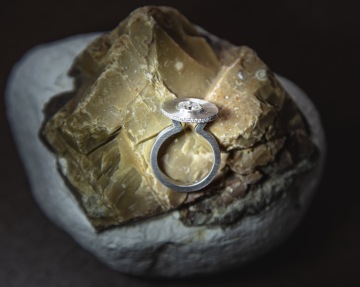 Zákázkově vyrobený zásnubní prsten z bílého zlata