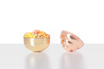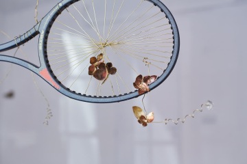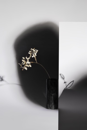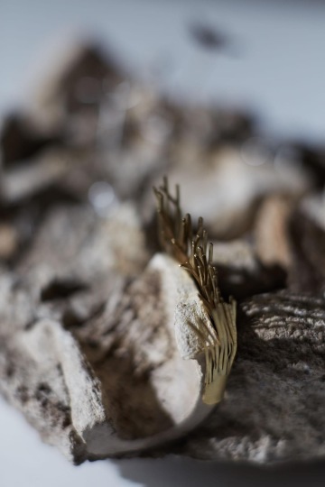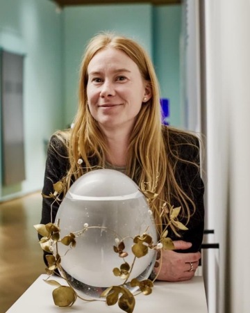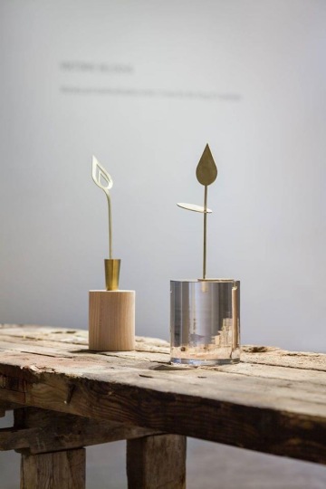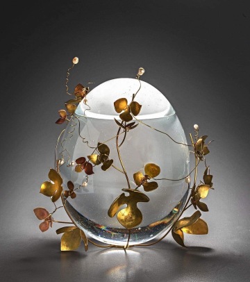Urna Lea(f)ve pro Glazbridge, tavené křišťálové sklo, mosaz, perly, meď